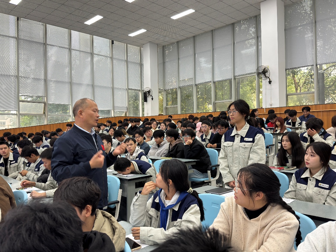 企业宣讲团队由中核集团首席技能大师、中华技能大奖获得者罗开峰领衔,中核五公司工程研究院培训中心主任刘增峰、人力资源部主管郭凌峰共同组成。宣讲会上,罗开峰首先分享了自己从一名普通焊工成长为首席技能大师的奋斗历程,生动诠释了“执着专注、精益求精、一丝不苟、追求卓越”的工匠精神。他强调了焊接技术在核电站建设等重大工程中的关键作用及其所承载的核安全文化使命,极大地激发了同学们对焊接专业和核工业事业的向往与热情。