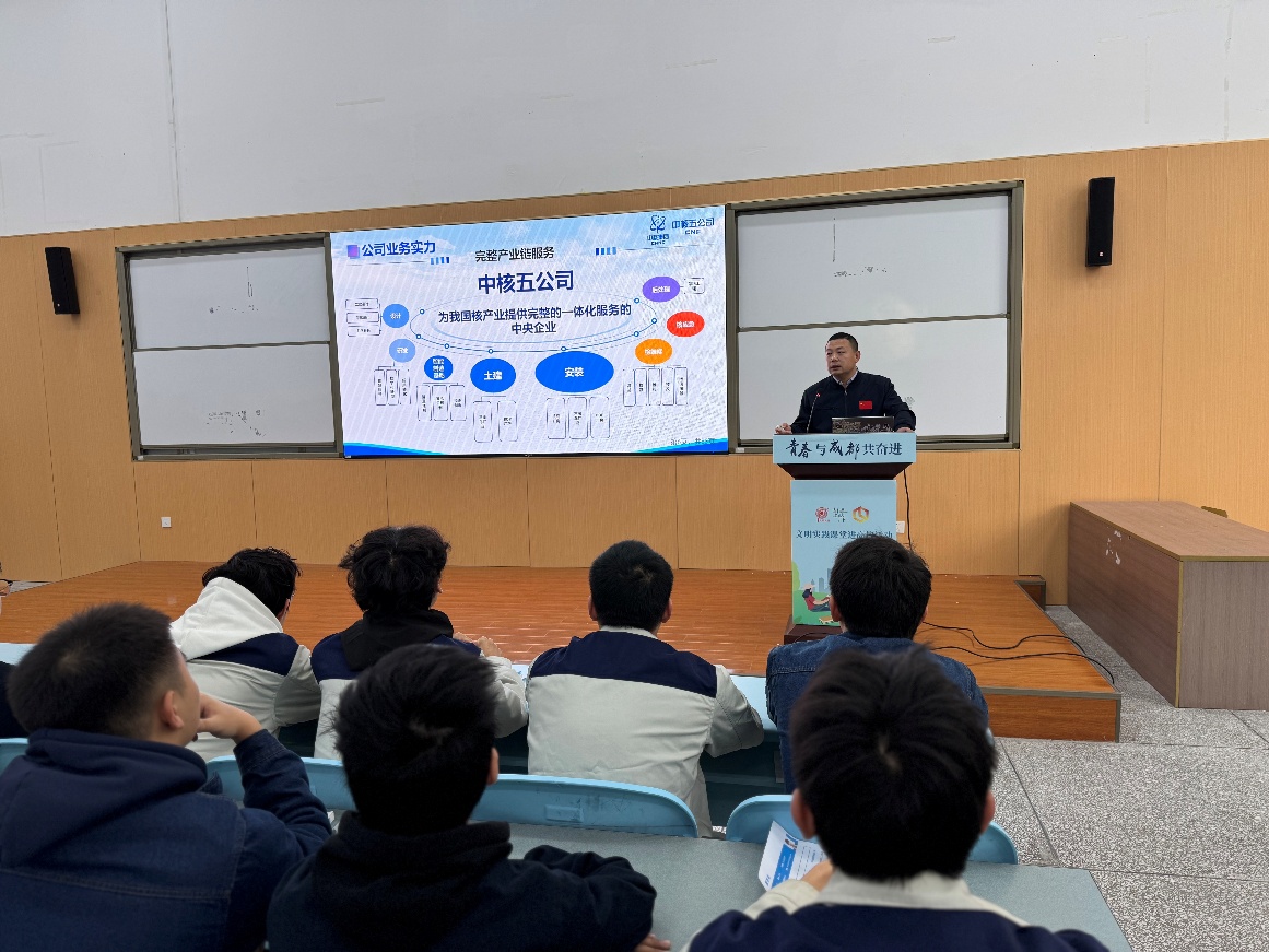 为深入贯彻落实国家关于深化产教融合、校企合作的战略部署,精准对接高端装备制造业人才需求,2025年11月11日,机械工程学院与中国核工业第五建设有限公司(以下简称“中核五公司”)联合举办的“焊工动态订单班”宣讲暨现场面试活动在学院隆重举行。本次活动以“技能报国,核你同行”为主题,旨在为学生搭建直通国家重点企业的优质就业平台,是学院推进高水平专业群建设和高素质技术技能人才培养的重要里程碑。