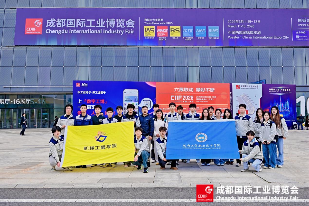 为拓宽学生专业视野,深化产教融合,切实将党建引领与专业实践相结合,3月12日,机械工程学院党总支学生党支部组织各专业优秀学生代表22人,前往2026年成都国际工业博览会现场开展参观学习。本届工博会以“创链新工业,共碳新未来”为主题,设置七大主题展区,集中呈现了智能制造全产业链的创新成果,同时也为学生搭建了理论联系实际,对接行业前沿的优质平台。